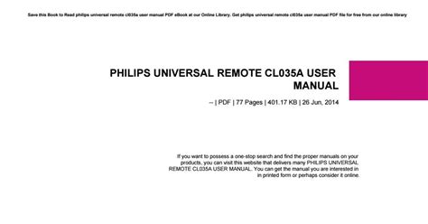 0 Response to "Read manual philips universal cl035a mobipocket"